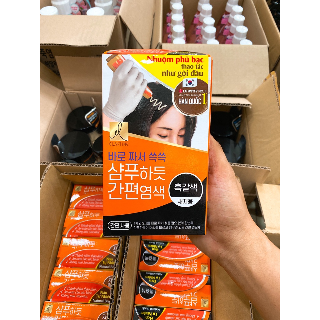 Hộp 3 Gói Gội Nhuộm Phủ Bạc Thảo Dược ELASTINE Hàn Quốc 20g*3