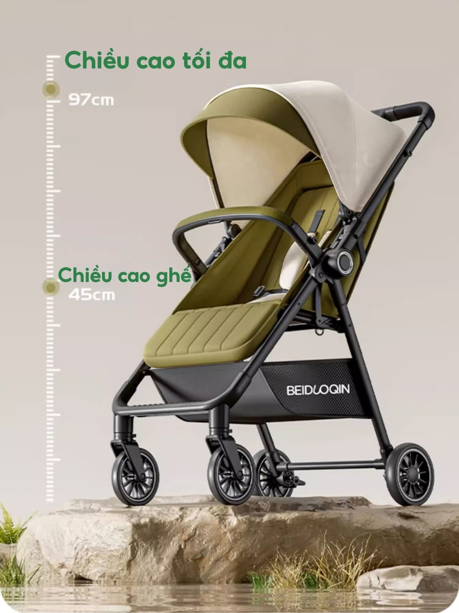 Xe Đẩy Gấp Gọn M2, Xe siêu nhẹ 4,8kg, Chức năng đẩy 2 chiều, ngả 3 tư thế.