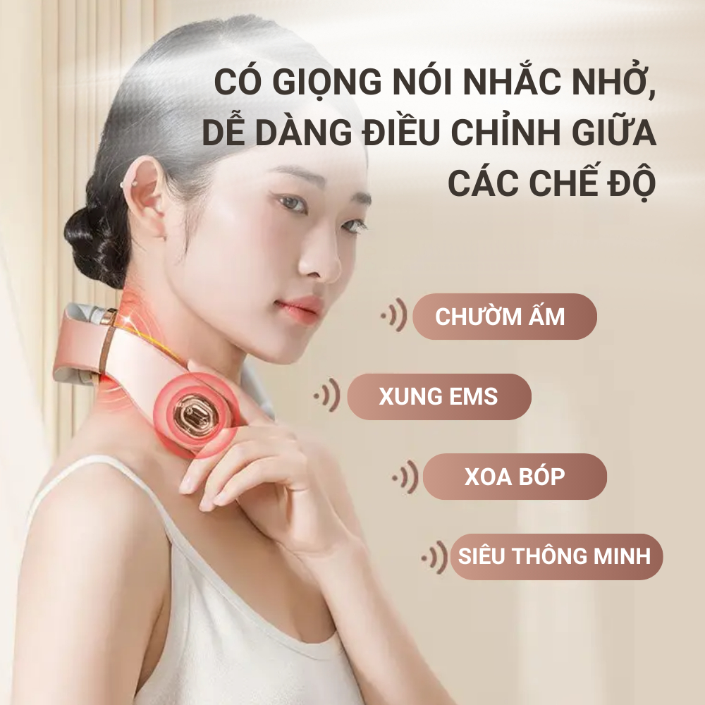 Máy massage cổ 8D Pro, massage rung kết hợp xung, chườm ấm, điều khiển qua app Mihome giúp giảm đau