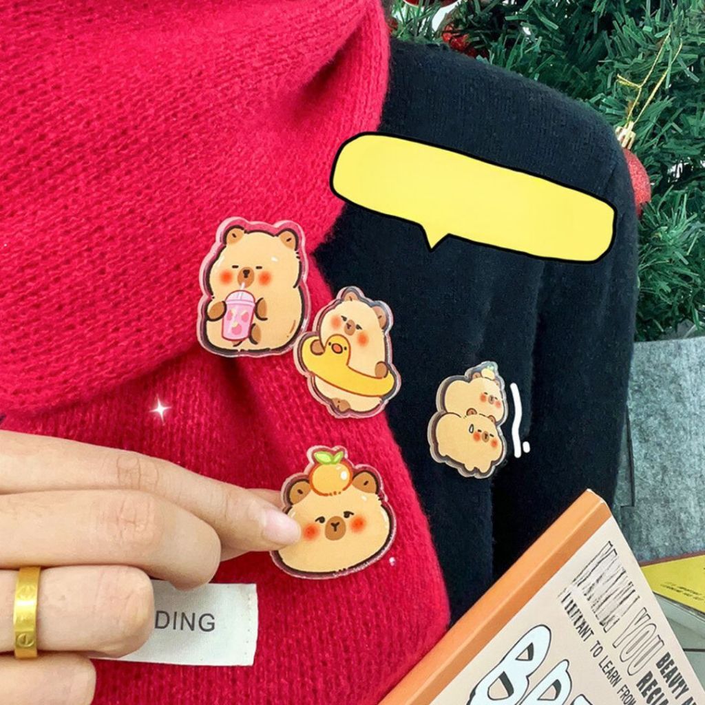 💞Cherry💞 Huy hiệu cài áo pin cài balo Chuột lang nước Capybara nhân vật hoạt hình dễ thương