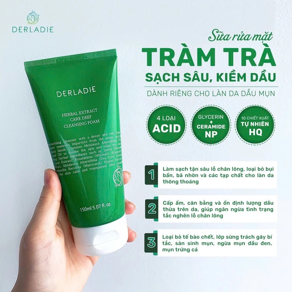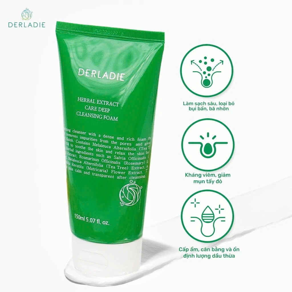 Sữa Rửa Mặt Tràm Trà Sạch Sâu, Kiềm Dầu Derladie Herbal Extract Care Deep Cleansing Foam 150ml