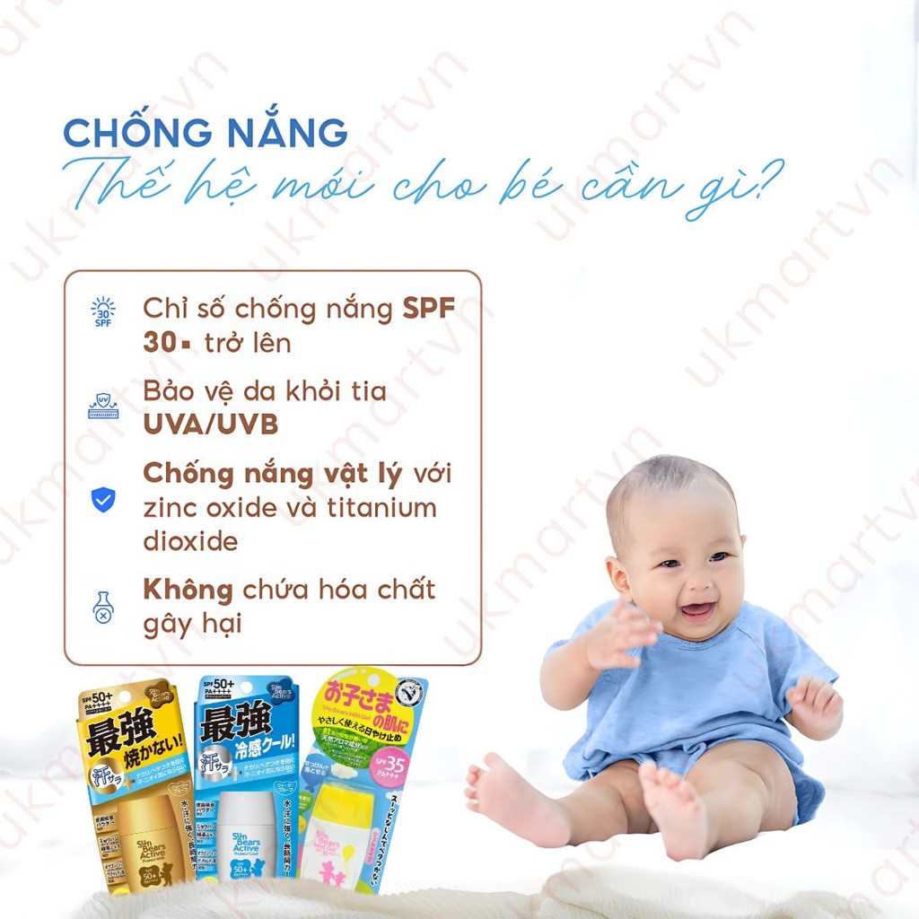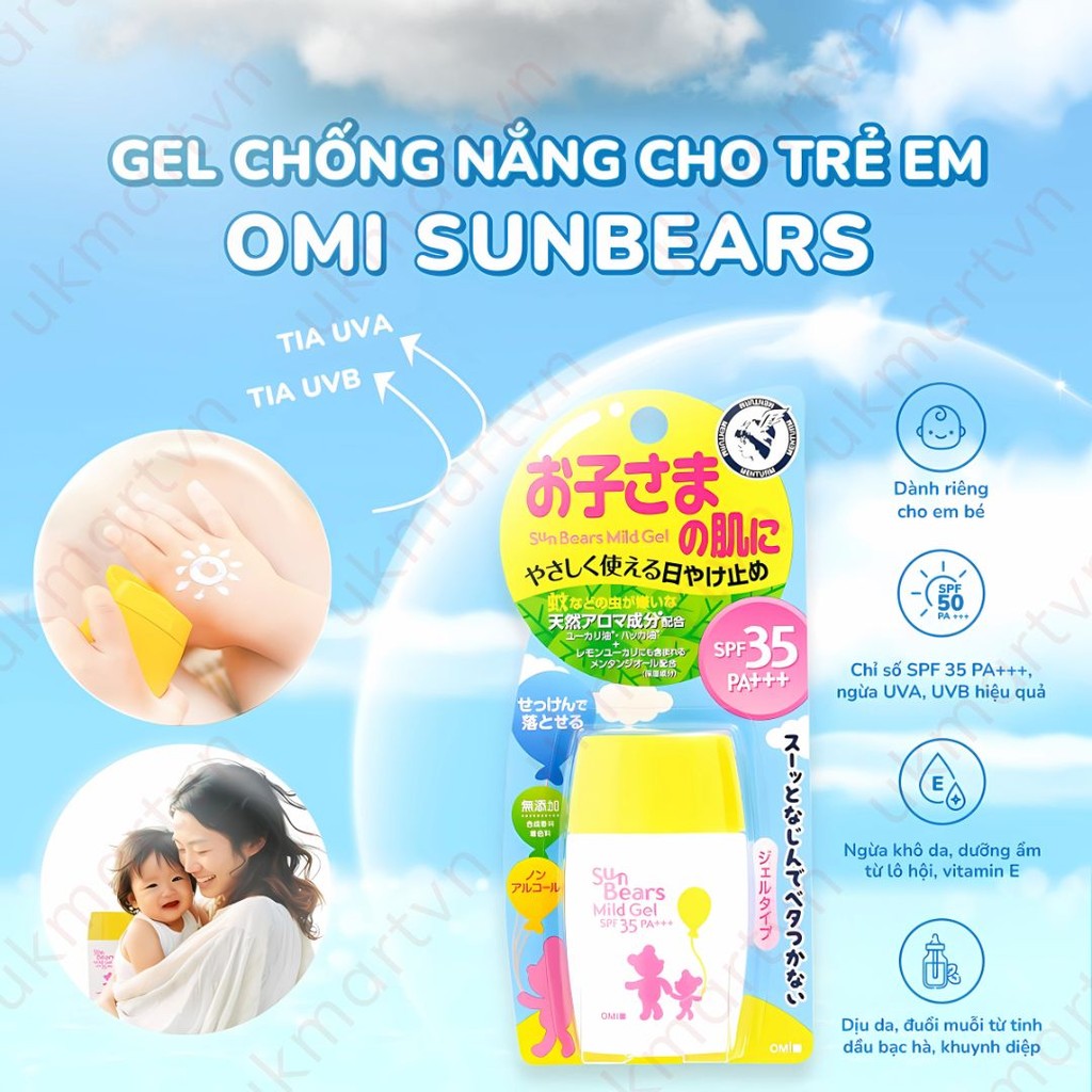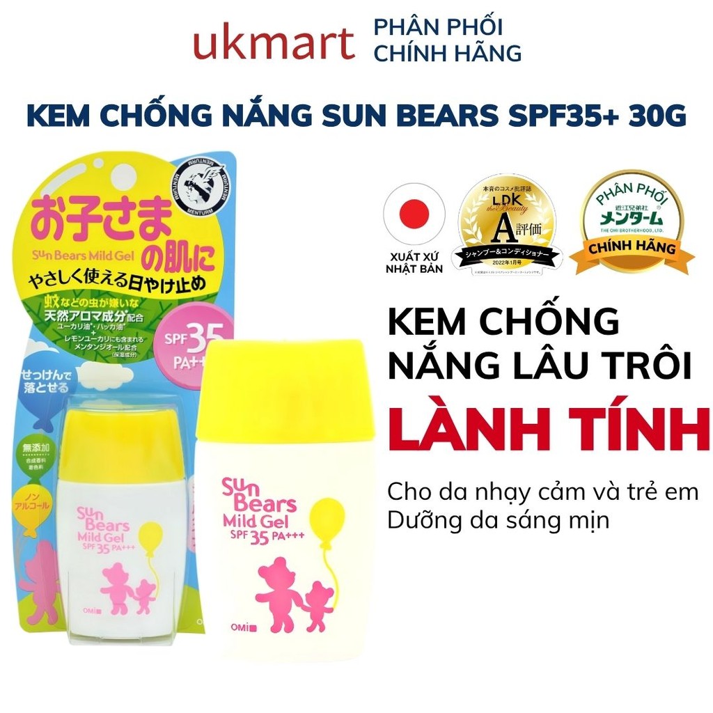 Mẫu mới Kem Chống Nắng Omi Sun Bears Chống Nước Kiềm Dầu, Khô Thoáng, Mát Lạnh SPF50+ PA++++ 30ml