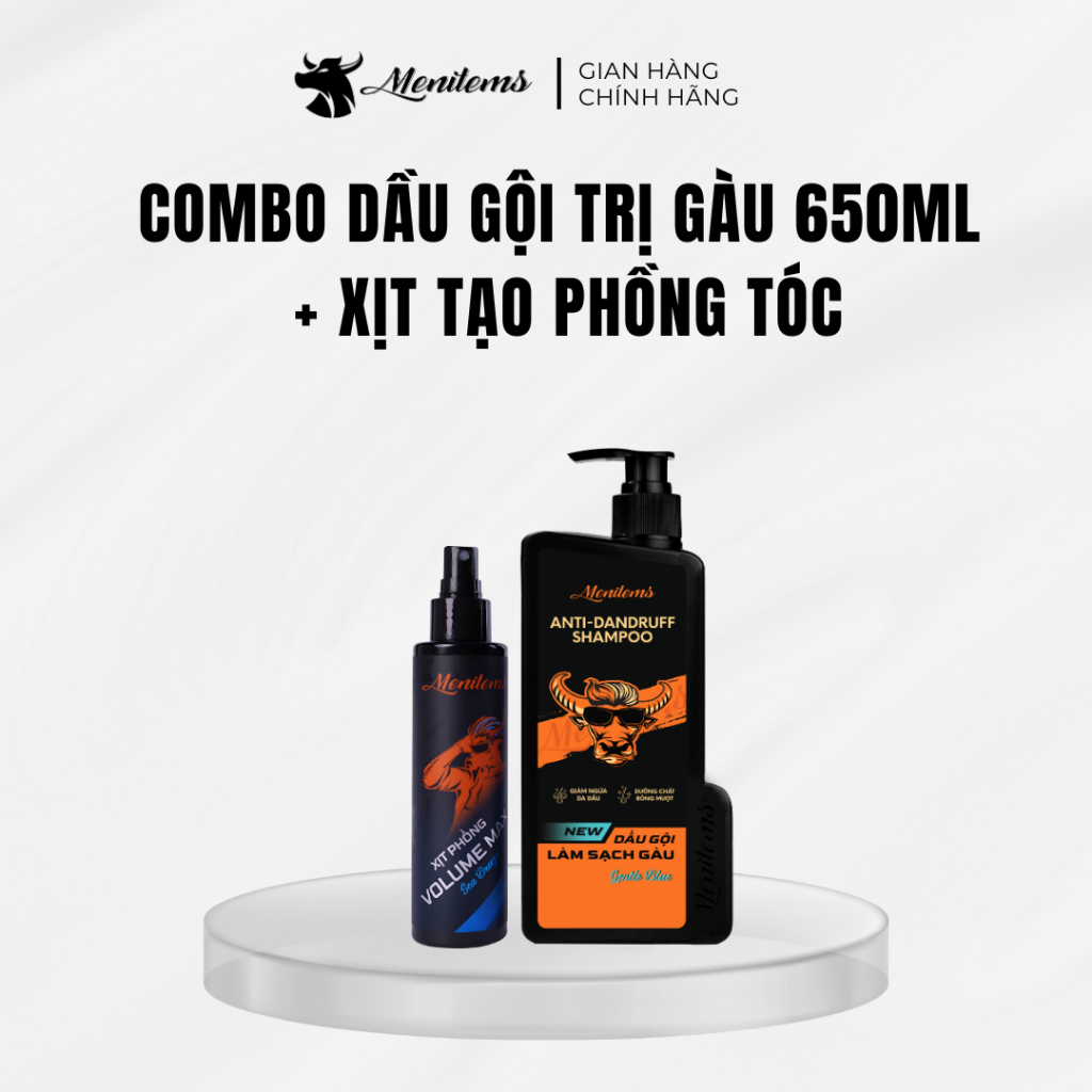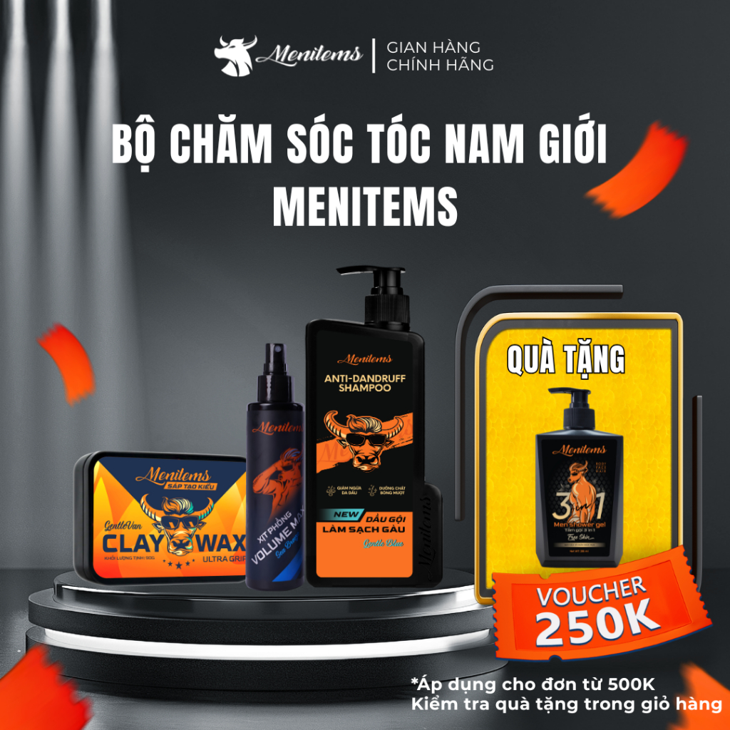 Bộ chăm sóc tóc nam giới Xịt tạo phồng tóc, Sáp vuốt tóc và Dầu gội sạch gàu Menitems