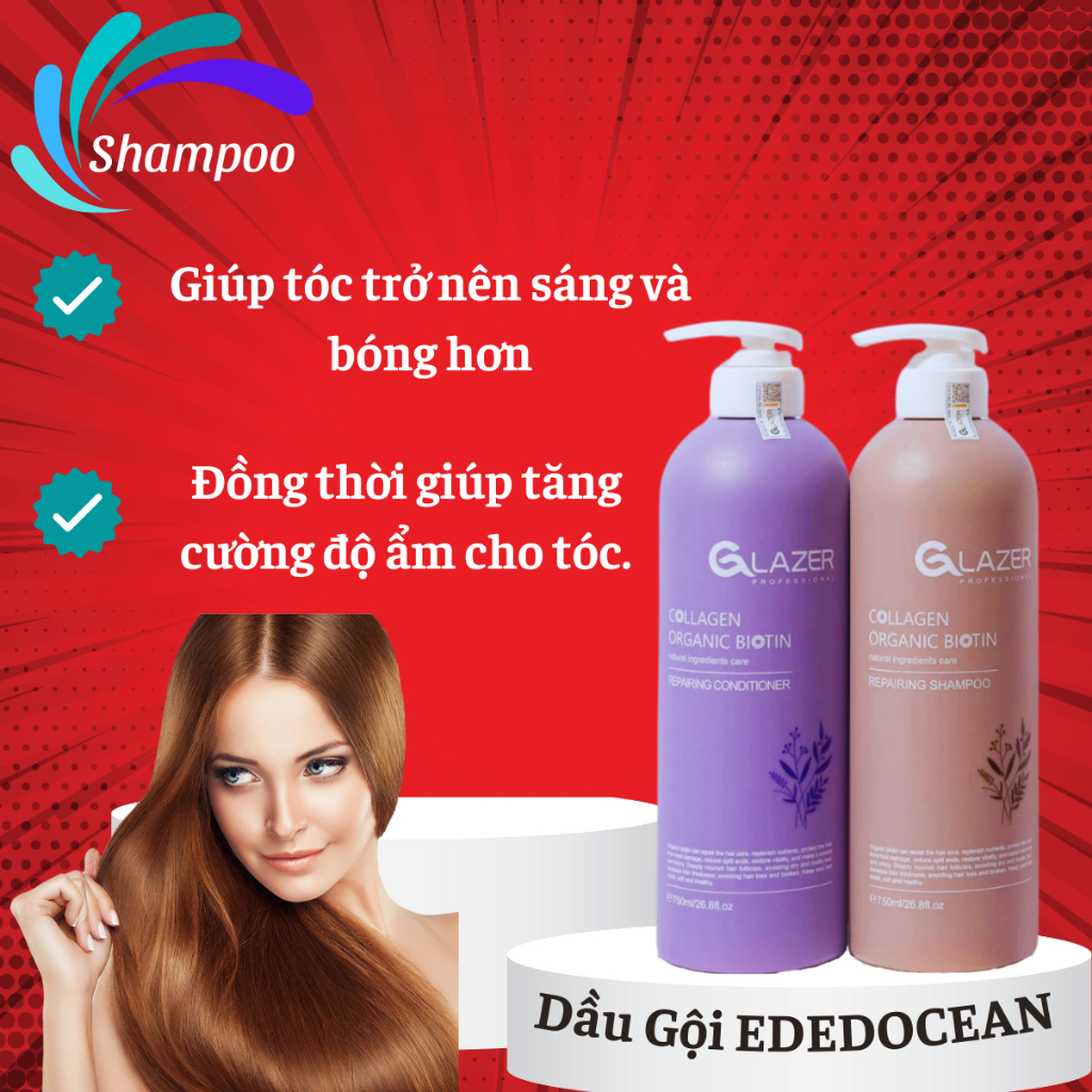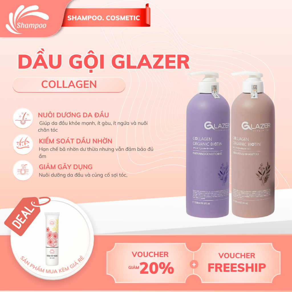 Dầu gội siêu mềm mượt phục hồi tóc Collagen Oganic Biotin Glazer 750ml
