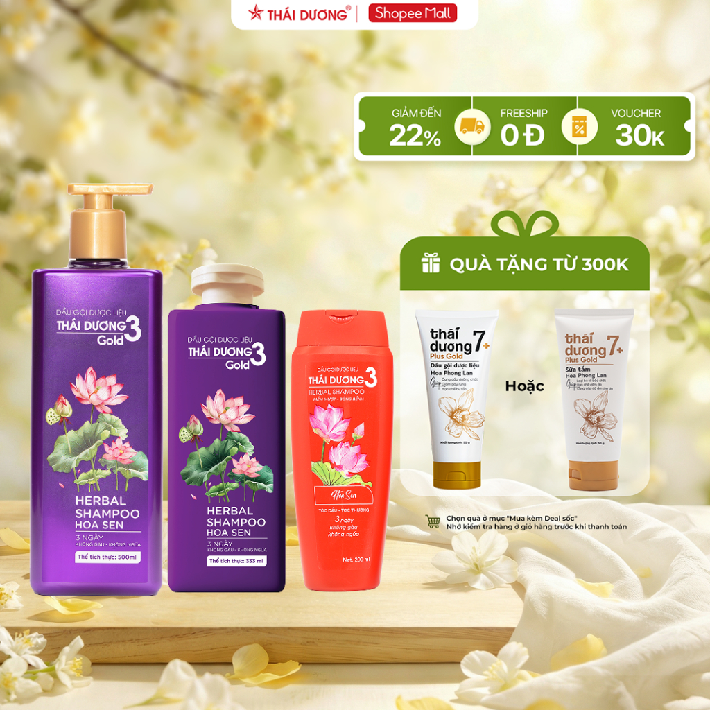 Dầu gội / Dầu xả dược liệu Thái Dương 3 Gold Hoa Sen chai 500ml, 333ml - Sao Thái Dương
