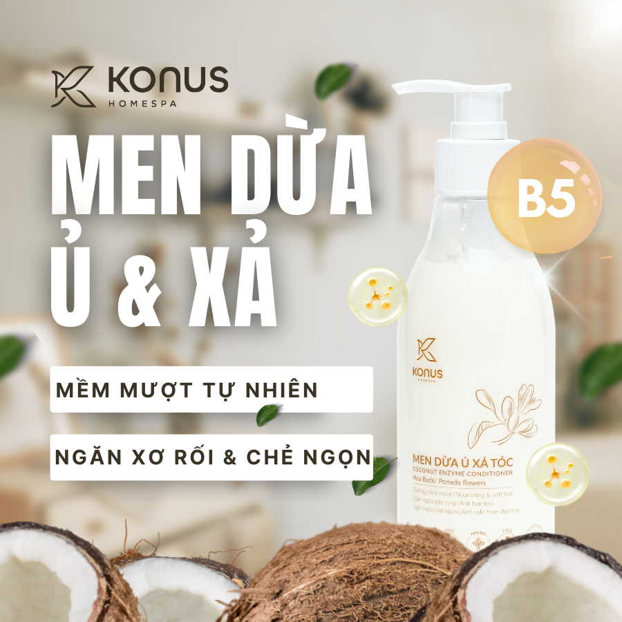 [COMBO 3 CHAI] Men Dừa Ủ Xả Tóc Konus Mềm Mượt Tự Nhiên Ngăn Xơ Rối & Chẻ Ngọn 250ml