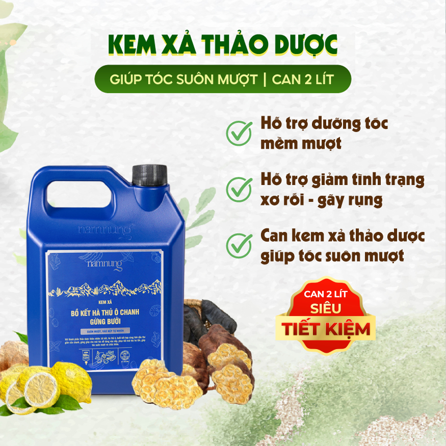 Combo Can Gội Xả NAMNUNG Thảo Dược Bồ Kết Hà Thủ Ô Giảm Gàu Rụng Chắc Khỏe Tóc 2000ML