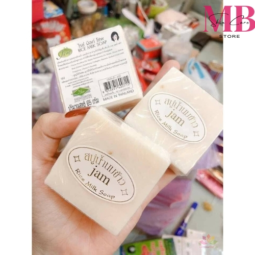 Xà Phòng Cám Gạo Jam Thái Lan Rice Milk Soap (1 bánh/ 65g) Sáng Da, Mềm Mại, Loại Bỏ Tế Bào Chết, Dầu, Mụn, Thâm Đen