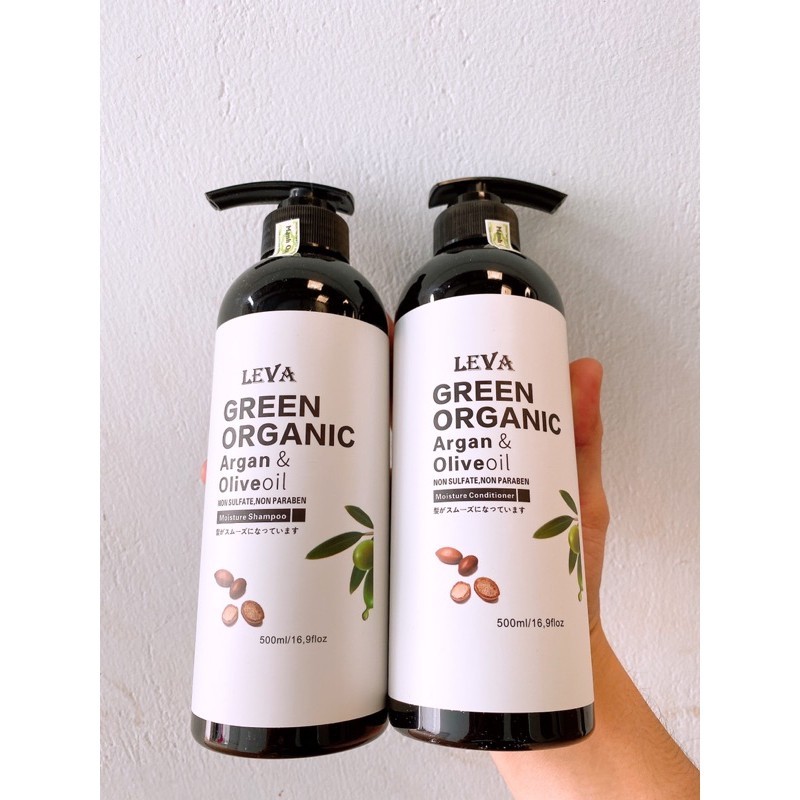 Cặp Gội - Xả Leva GREEN ORGANIC & Olive Oil phục hồi tóc hư tổn tổn Nhật Bản 500ML & 800ML & 1000ML