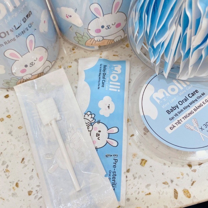 Gạc Vệ Sinh Răng Miệng Molli Cho Bé Từ 0-3 Tuổi Hộp 30c Đã Tiệt Trùng MẸ THÁI VŨ