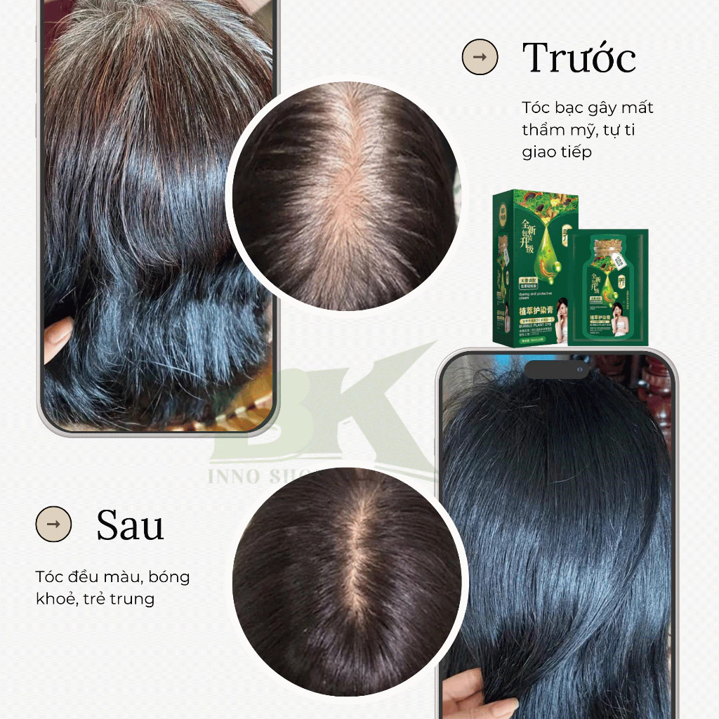 Hộp 10 Gói Tinh Chất Nhuộm Tóc Thảo Dược Tại Nhà,nhuộm tóc tại nhà,Dầu Gội Phủ Bạc Thảo Dược,