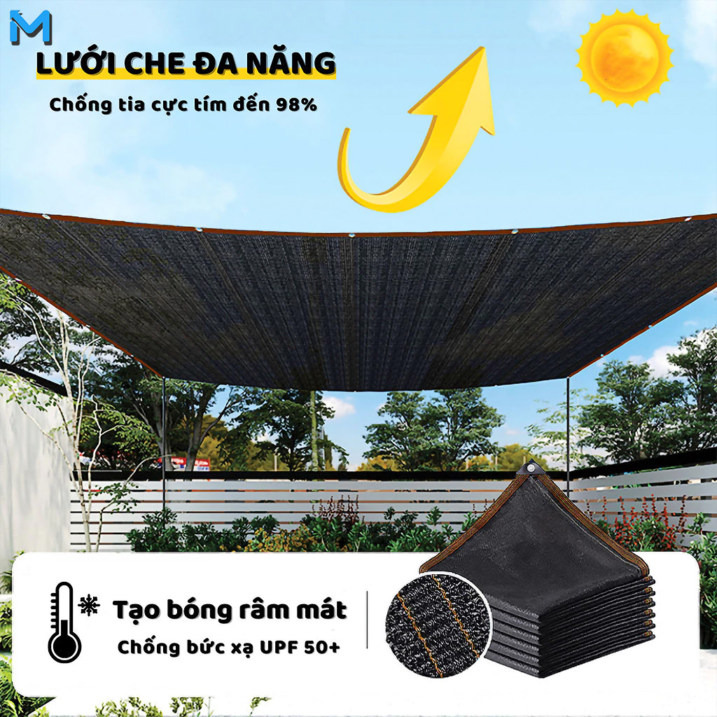 Lưới che nắng ngoài trời màu đen Tỷ lệ che nắng 96%, chống tia cực tím, Lưới che nhà để xe ô tô