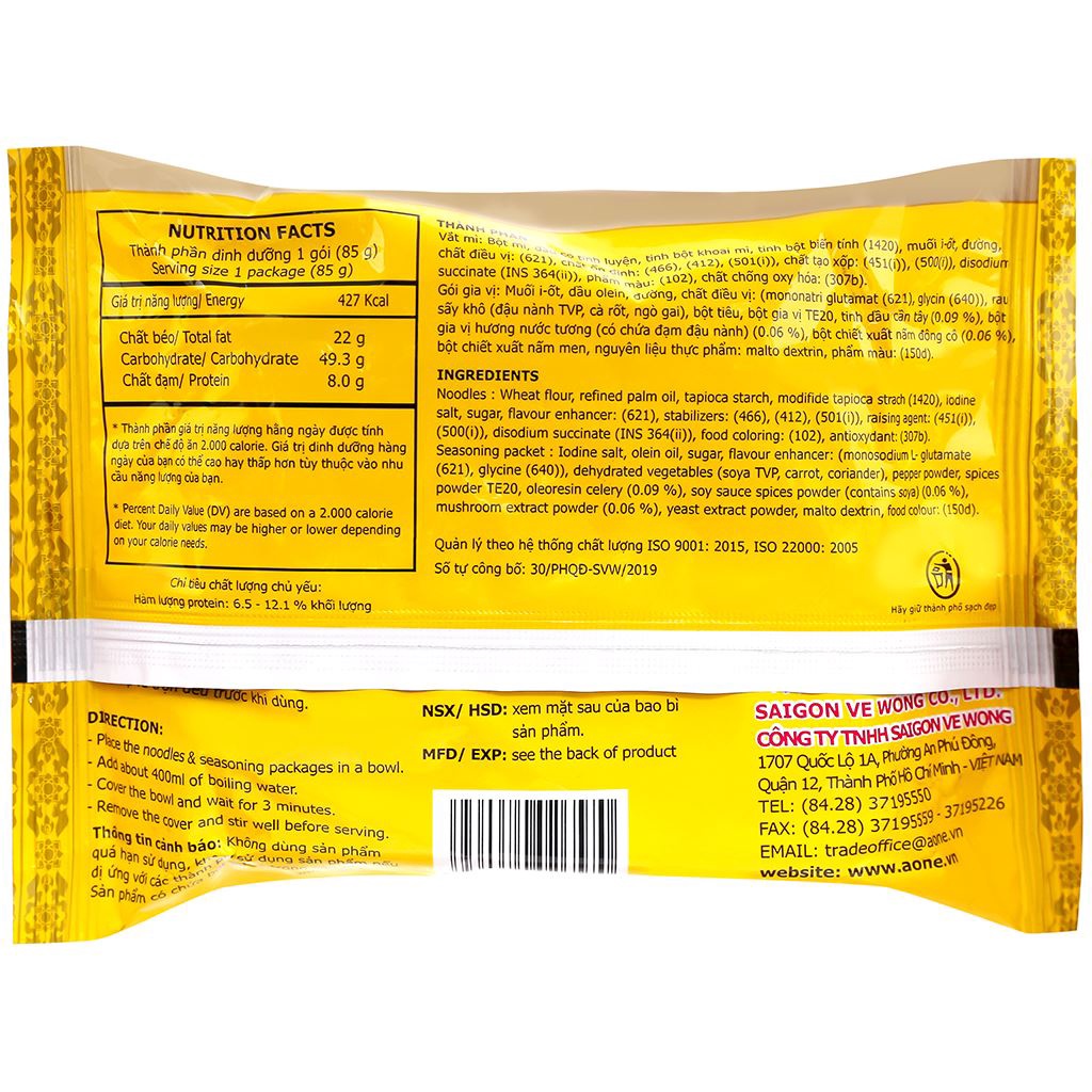 Thùng 30 gói Mì chay A-one Hương Sen gói 85g