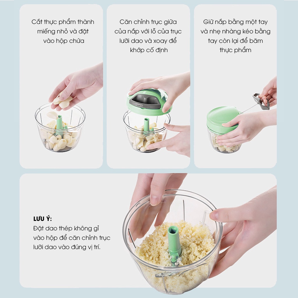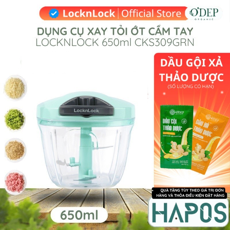Xay tỏi ớt LocknLock bằng tay 650ml Chính hãng 3 lưỡi dao thép không gỉ, làm đồ ăn dặm cho bé CKS309GRN - HAPOS OFFICIAL
