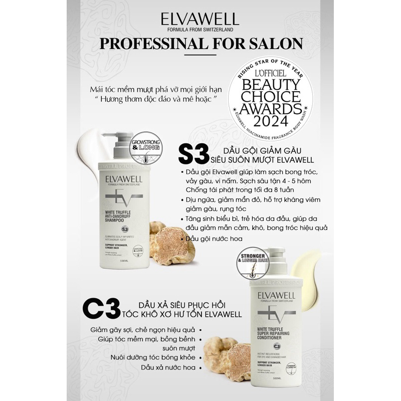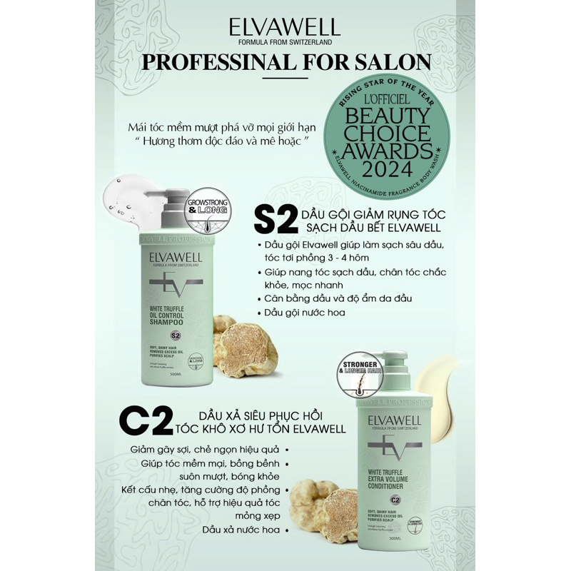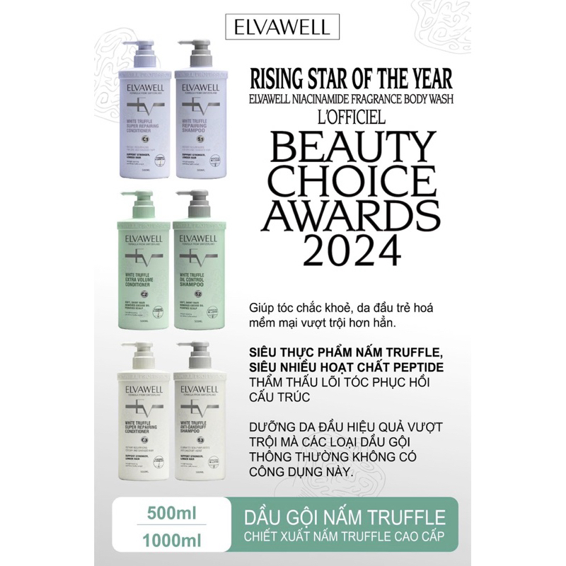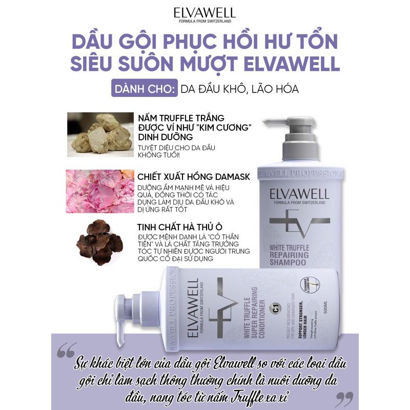 Cặp Dầu gội Elvawell Nấm Truffle suôn thơm hương nước hoa