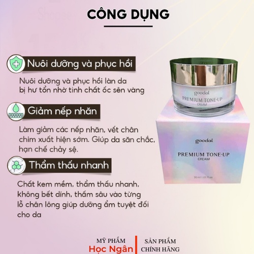Kem Dưỡng Trắng Da Ốc Sên GOODAL Premium Snail Tone-Up Cream 30ml Nuôi dưỡng và phục hồi làn da bị hư tổn myphamhocngan1