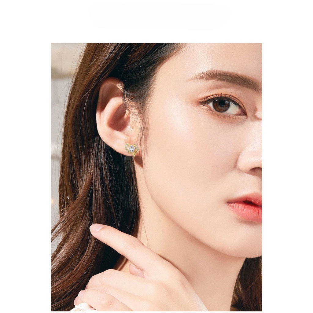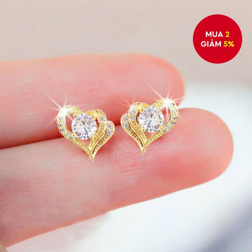 2 Chiếc Hình Trái Tim Bông Tai Vàng Bạc Tối Giản Sang Trọng Lấp Lánh Trang Sức