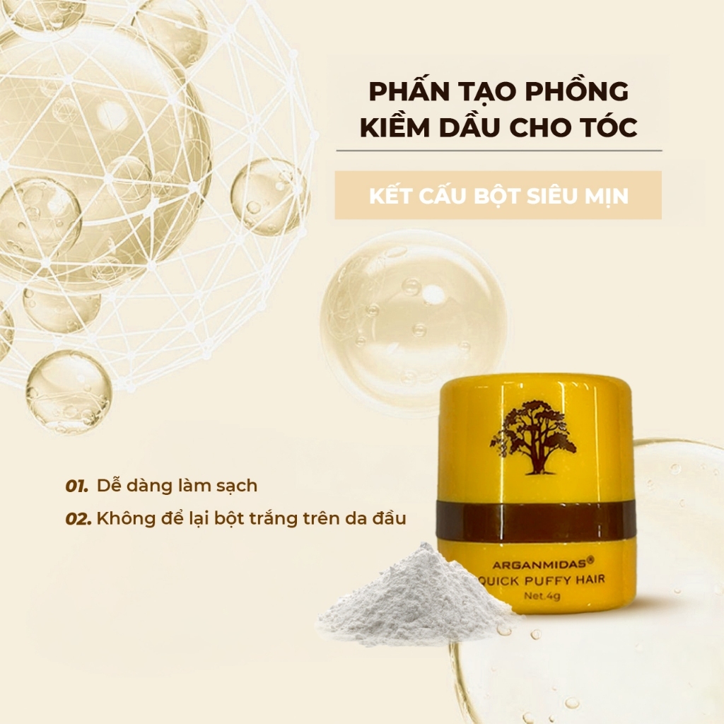Phấn tóc kiềm dầu tạo phồng chân tóc Arganmidas, hỗ trợ kiểm soát dầu thừa, giúp tóc bồng bềnh lâu bết