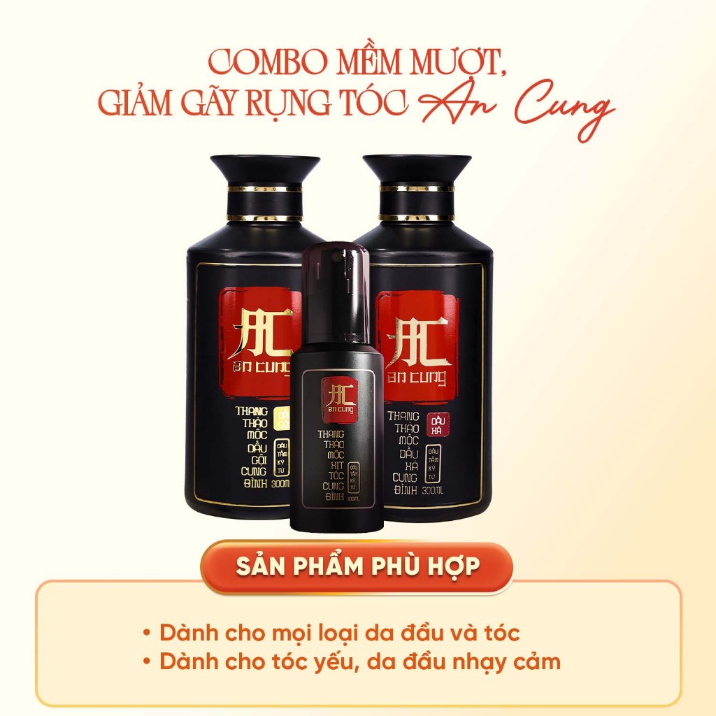 Combo Dầu Gội Xả Xịt Thảo Dược An Cung, Thang Thảo Mộc Gội Xả Mềm Mượt, Giảm Rụng Tóc, Phục Hồi Hư Tổn