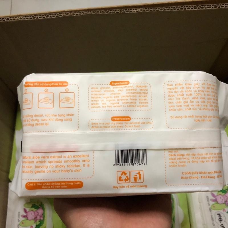 Combo 10 gói khăn ướt phú đạt khăn ướt thỏ cực kì dày dặn dùng được cho người già và trẻ nhỏ