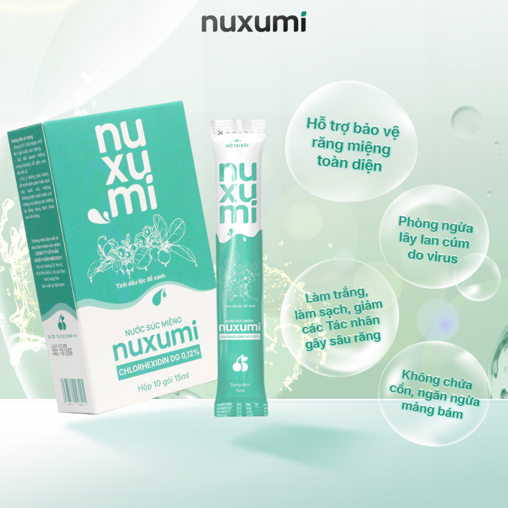 Nước súc miệng Nuxumi 280ml Chlorhexidine 0.12% | Không cồn | Giảm hôi miệng, chăm sóc nướu