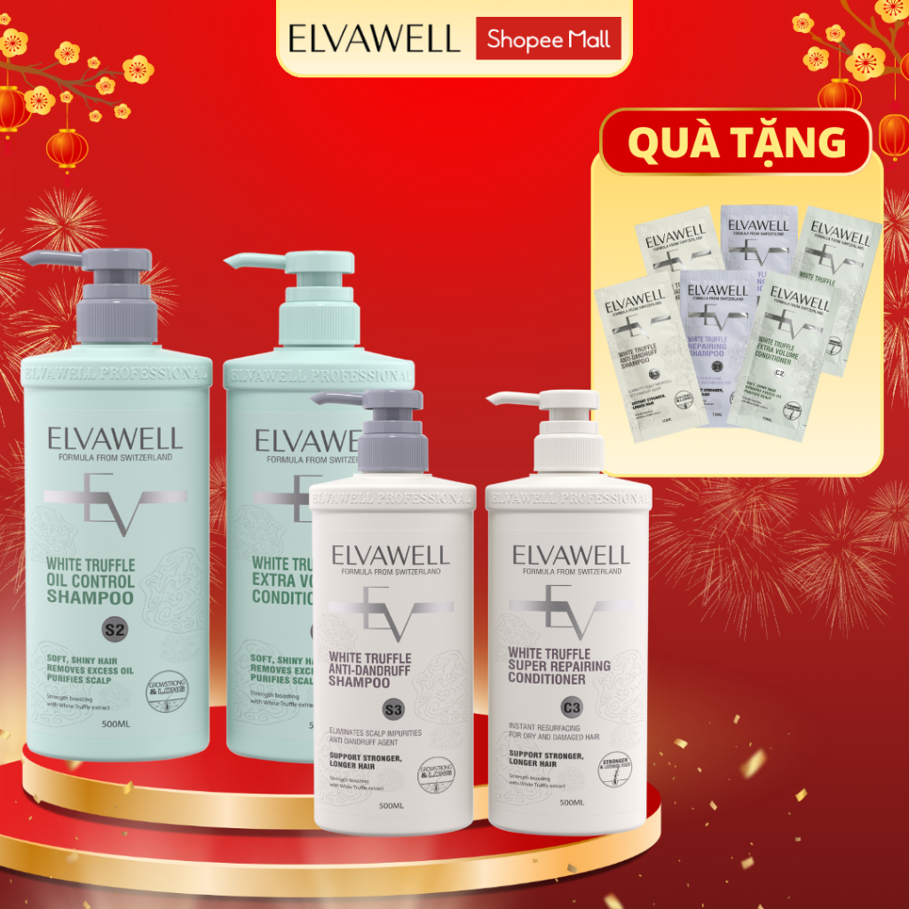 Combo Gội + Xả Elvawell Phục Hồi Hư Tổn - Giảm Gàu Siêu Suôn Mượt - Giảm Gãy Rụng Tóc Sạch Dầu Bết
