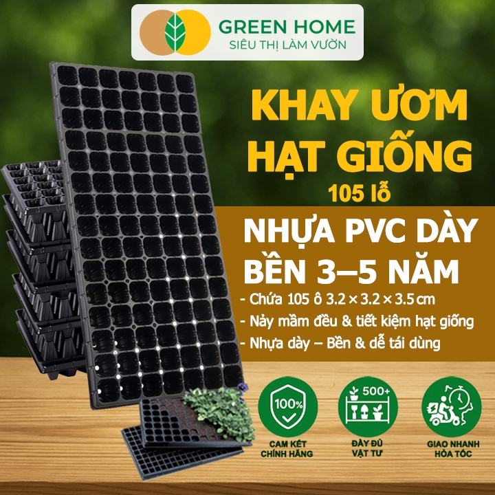 5 Khay Ươm Hạt Giống GreenHome, 105 Lỗ, Thoáng Rễ, Nảy Mầm Cao, Tiết Kiệm Diện Tích Ươm, Độ Bền Cao