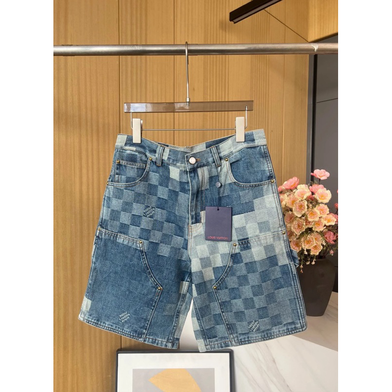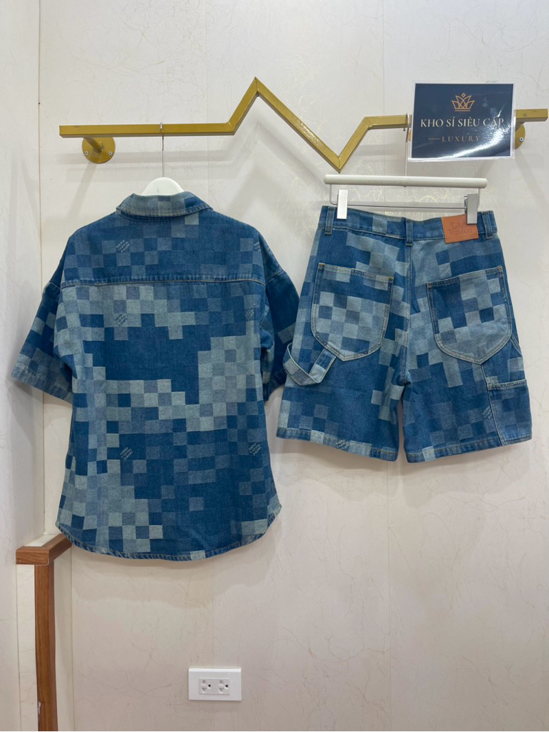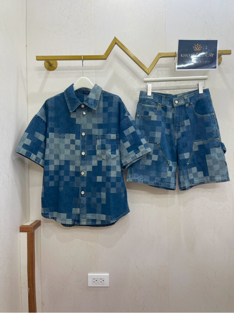 [💥 HOT ITEM] - Bộ Demin L/vvv - Bộ Bò Cộc Lệ Vi Xanh Ô Vuông Minecraft Cúc Ngọc Trai - Bản Cao Cấp