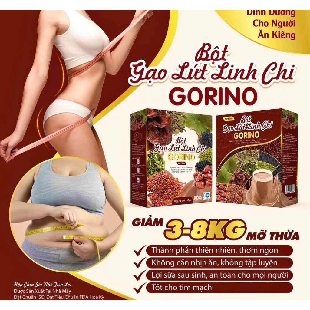Bột gạo lứt gorino linh chi mè đen 15 gói - Bột Gạo lứt nguyên chất phù hợp ăn kiêng cho mẹ bầu