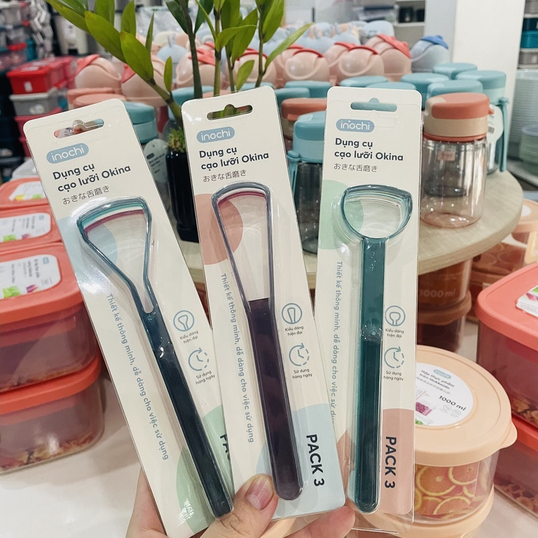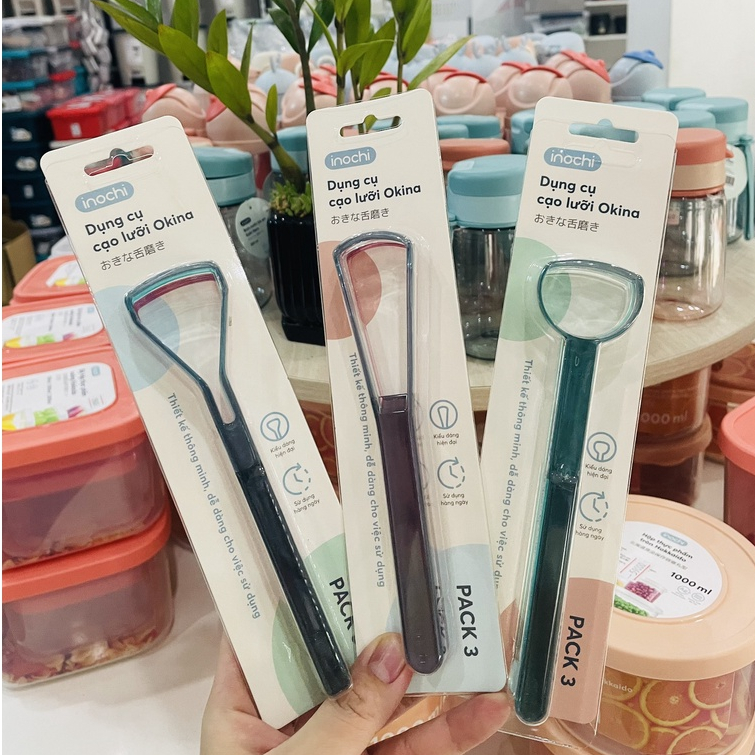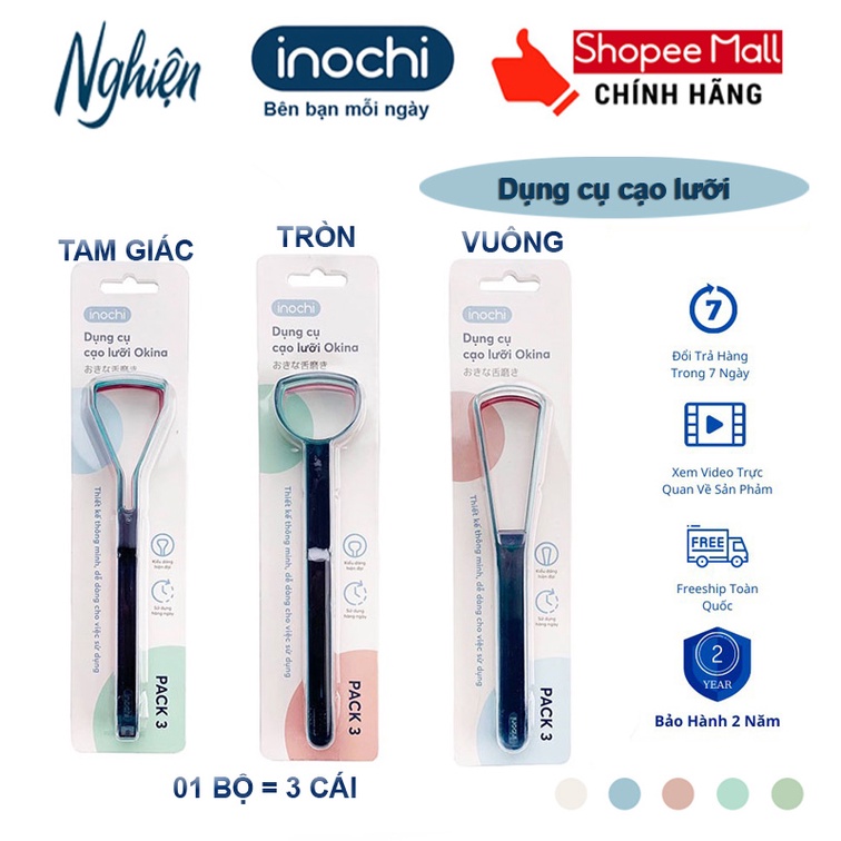(Bộ 3 cái) Dụng cụ cạo lưỡi Okina (Tròn - Vuông - Tam Giác) - Chính hãng INOCHI