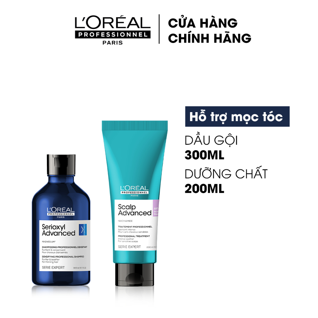 Combo Dầu gội 300ml & dầu xả làm dày tóc chuyên nghiệp L'Oréal Professionnel Serioxyl Advanced