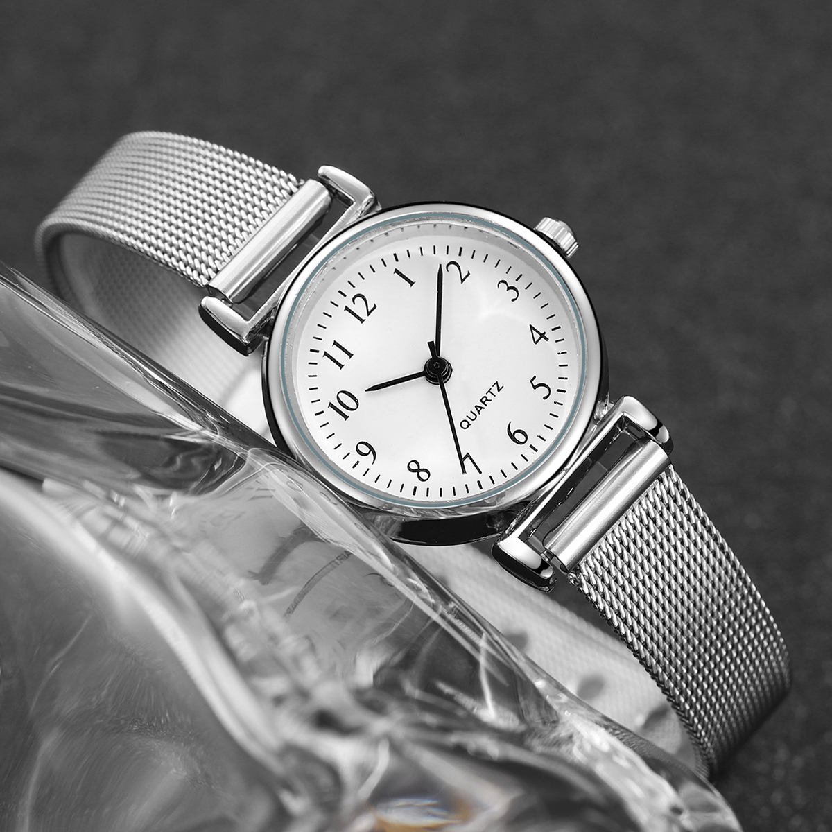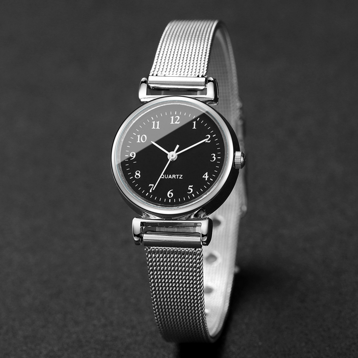 Đồng hồ mặt số siêu nhỏ thanh lịch, Đồng hồ thạch anh dây lưới thép không gỉ dành cho nữ lao động Tối giản hàng ngày