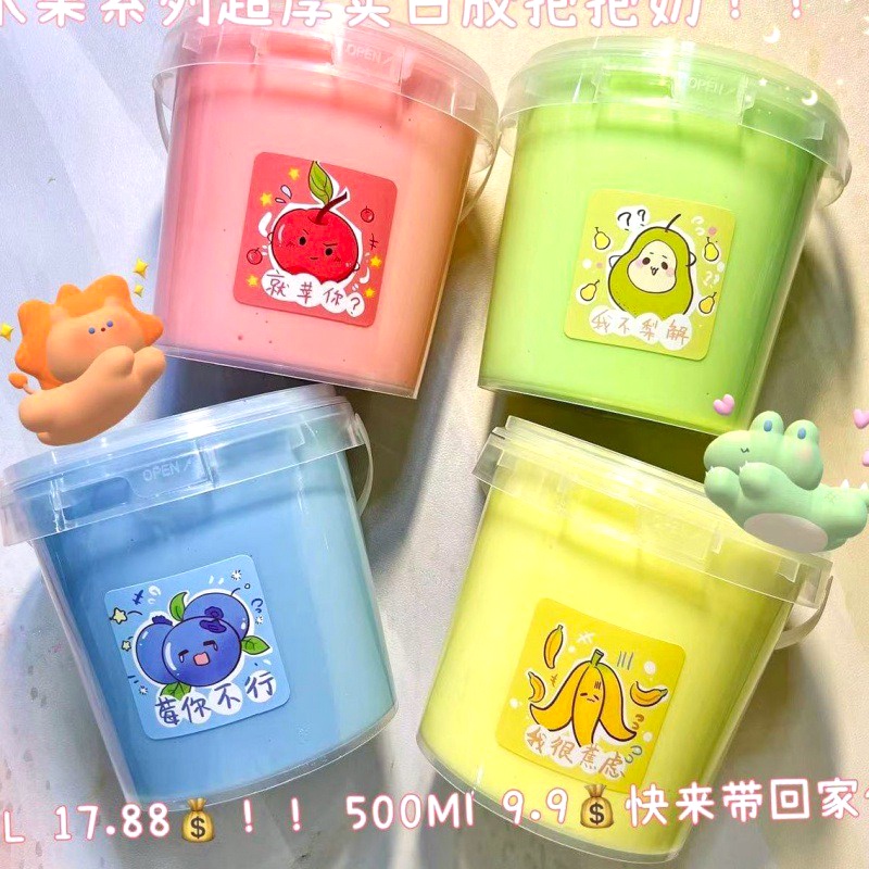 Slime Sữa Chuối Việt Quất Bơ Cherry 4 màu Xô 1000ML 1KG cực đẹp Đồ chơi hũ slam chất nhờn ma quái squishy