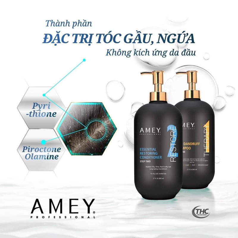 Dầu gội phục hồi tóc hư tổn Amey Restore System Shampoo 800ml dưỡng tóc nhuộm, tóc tẩy Cao cấp Canada