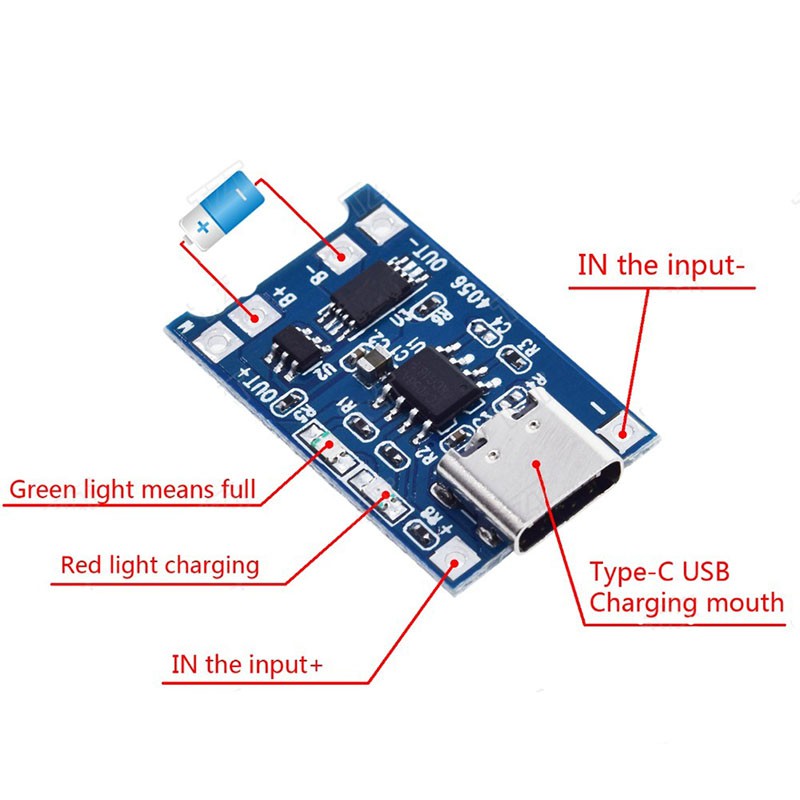 6PCS Type-C USB 5V 1A 18650 TP4056 Lithium Battery Charger Module Charging Board with Protection Dual Functions
