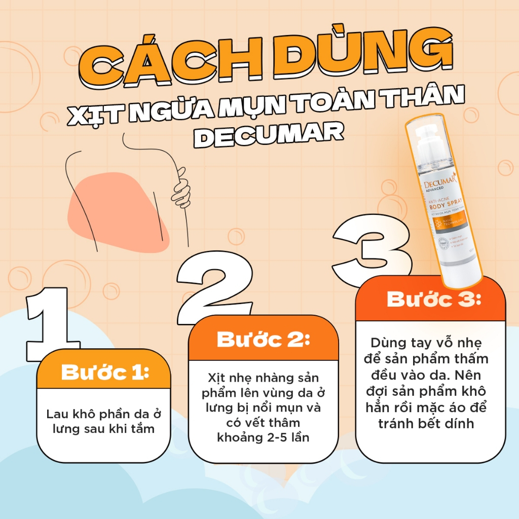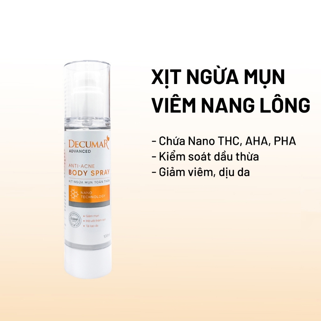 Xịt giảm mụn lưng Decumar Advanced Anti Acne Body Spray giảm mụn cơ thể, viêm nang lông, cấp ẩm, dưỡng sáng da, mờ thâm