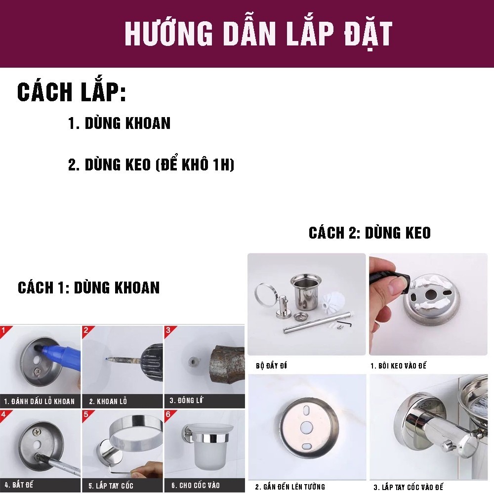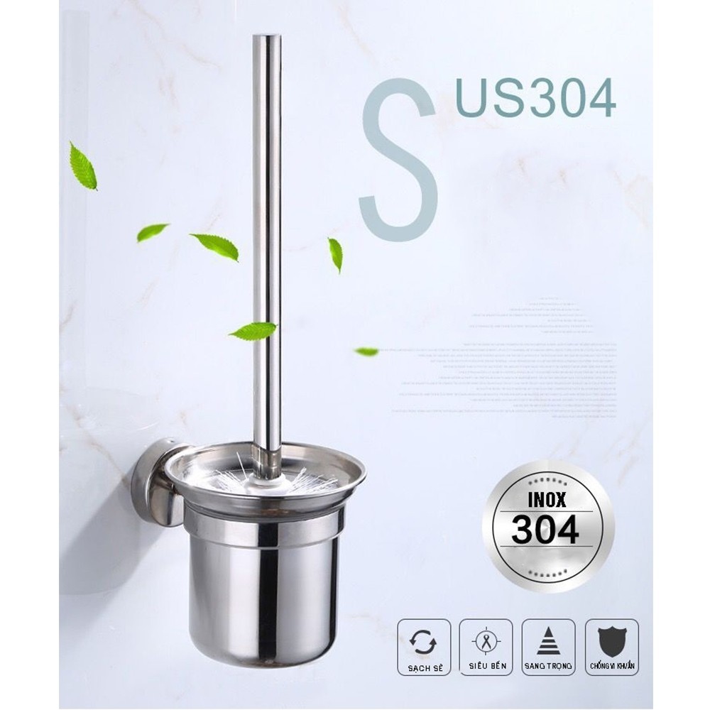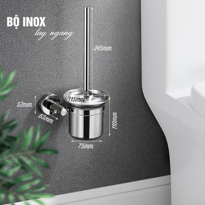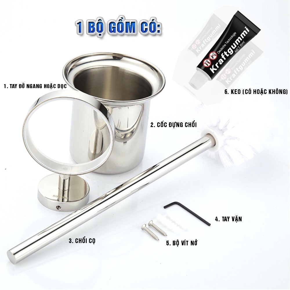 Bộ cốc chổi cọ bồn cầu, toilet nhà vệ sinh, sàn nhà, treo tường Inox 304 không cần khoan, Minh House
