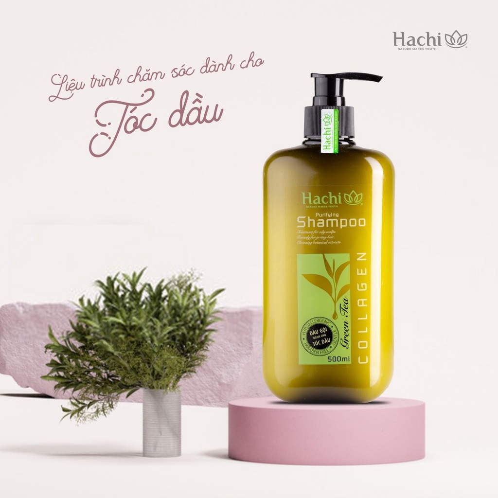 Combo gội xả trà xanh cho tóc dầu bết Green Tea Hachi Việt Nam hỗ trợ giảm dầu nhờn trên mái tóc