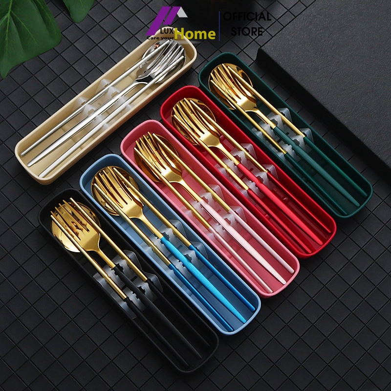 Bộ đũa thìa dĩa inox cao cấp, mạ vàng sang trọng, dùng cho cá nhân mang cơm văn phòng LUXHOME