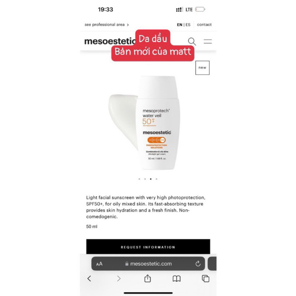 Kem chống nắng Mesoestetic Mineral Light Water Antiaging Veil SPF50