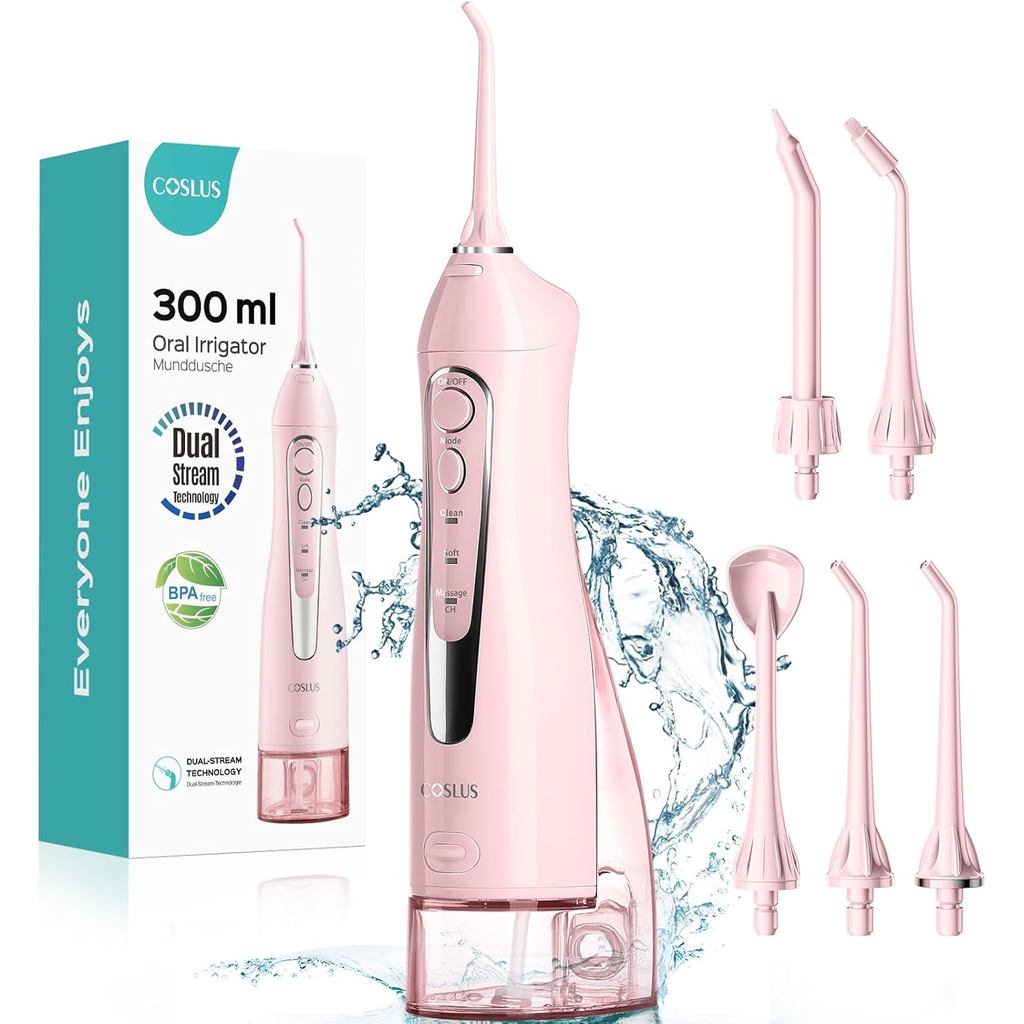 COSLUS Water Dental Flosser Răng Chọn: Máy tưới nước không dây di động 300ML Máy tưới nước du lịch có thể sạc lại IPX7 Máy đánh bóng điện chống nước để làm sạch răng C