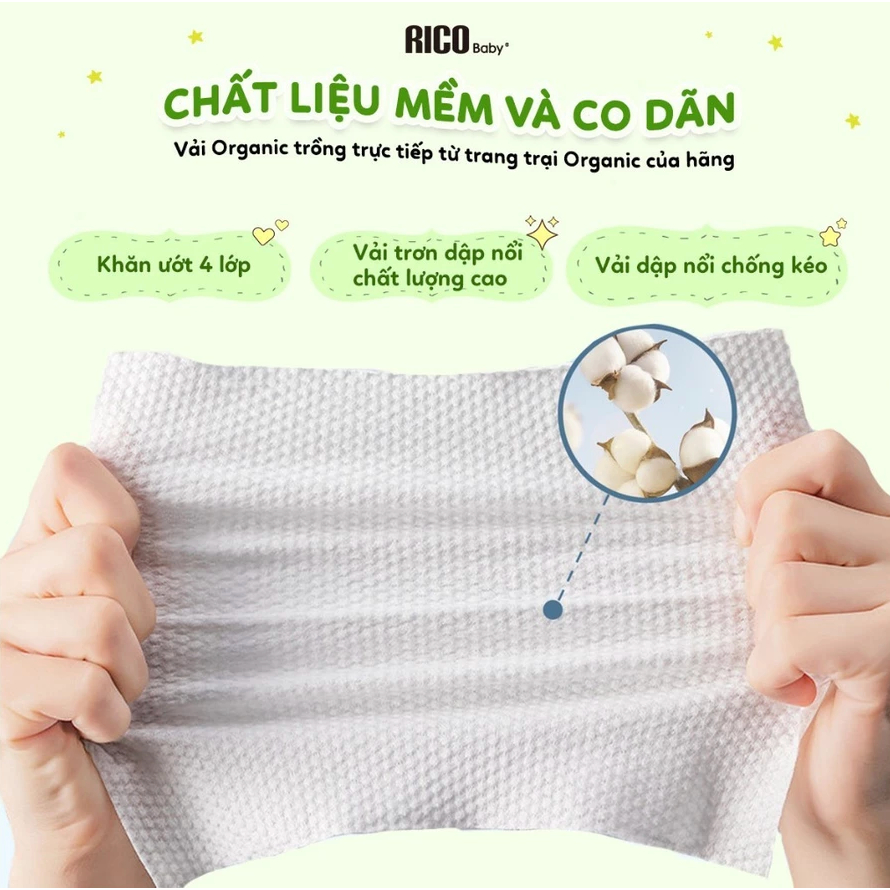 [Thùng 12 bịch] Khăn ướt Rico Baby Hàn Quốc an toàn cho bé & gia đình ( Nk chính hãng)