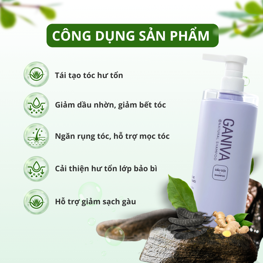 Dầu Gội Ganiva Tím Dầu Gội Bồ Kết Bơ Bưởi Kiềm Dầu Giảm Gãy Rụng Bết Dính Sạch Gàu ( 1 Gội Tím)