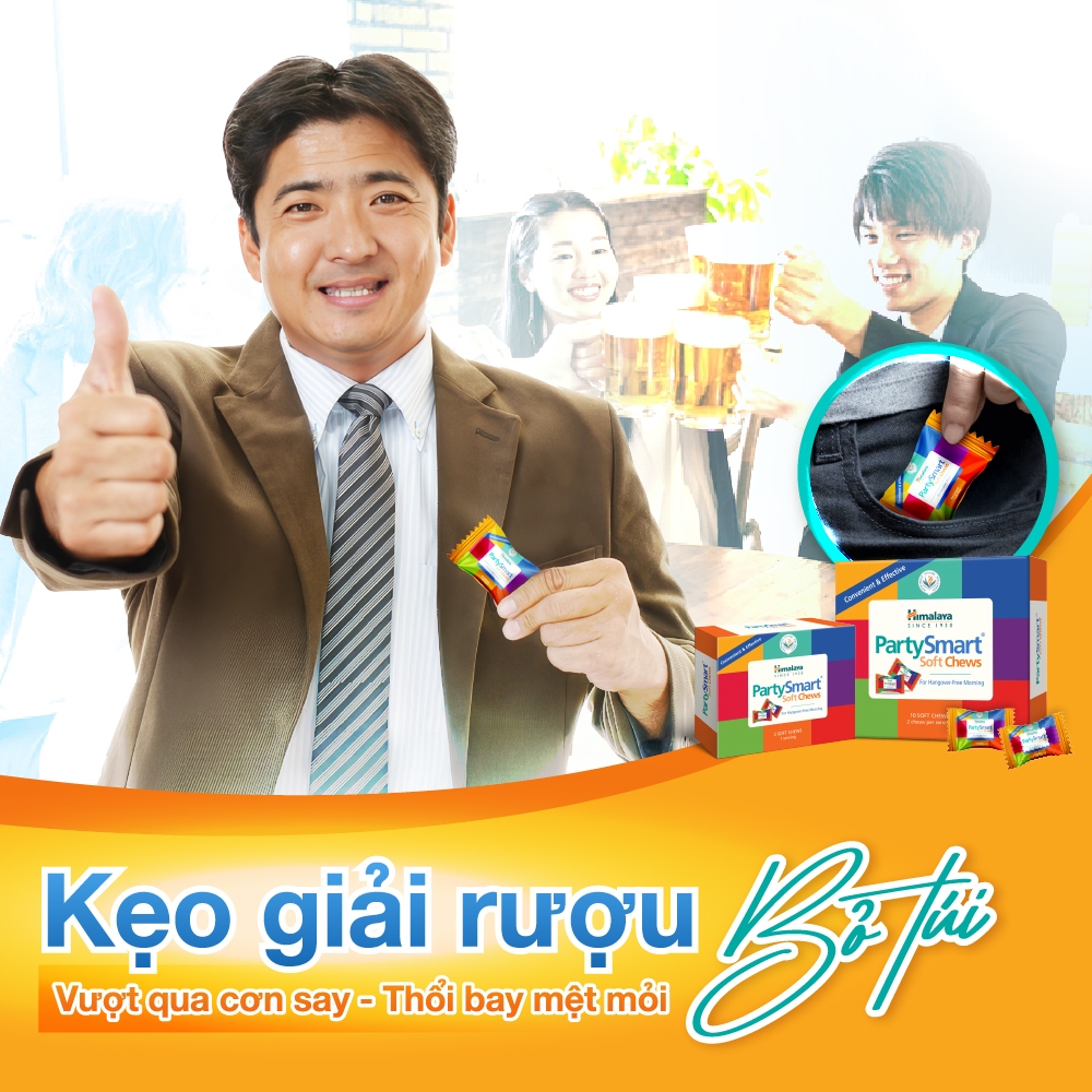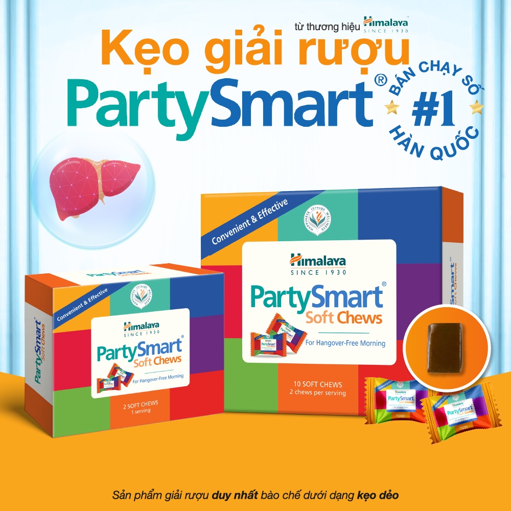 PartySmart Kẹo Hỗ Trợ Giải Rượu, Hỗ trợ giảm say nguội Himalaya Party Smart Soft Chews - Hộp 2 Viên