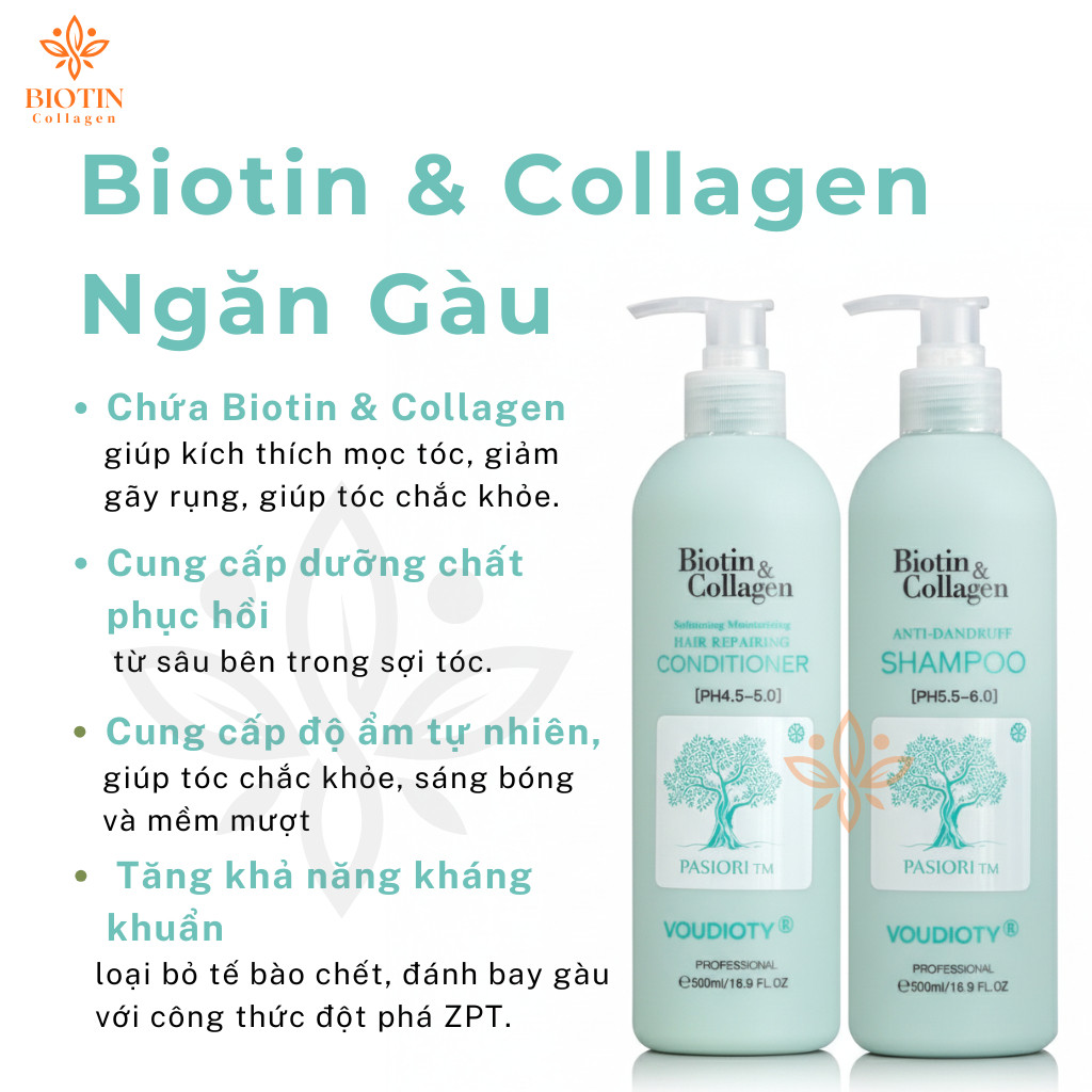 Dầu Gội Xả Biotin Collagen Voudioty Xanh Dương 500ml/1000ml Giảm Rụng, Kích Mọc Tóc, Phục Hồi, Ngăn Gàu (2021)