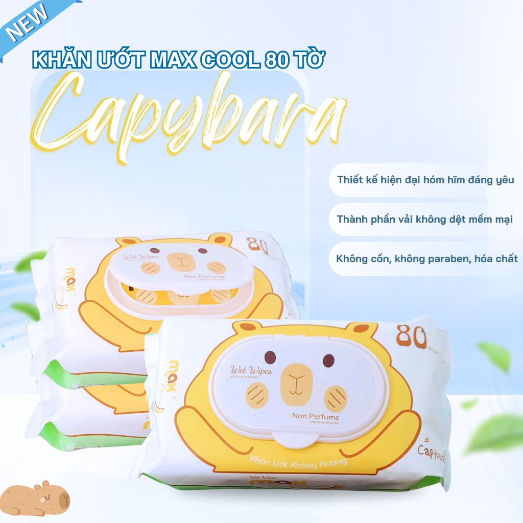 1 gói khăn ướt 80 tờ Max Clean hình Capybara siêu đáng yêu - Không hương