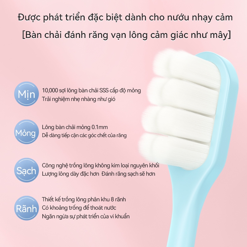 [2 Cái] Blispring Bàn chải đánh răng mềm như mây Nhẹ nhàng với nướu Lông bàn chải 0,1mm Làm sạch sâu răng và vết bẩn