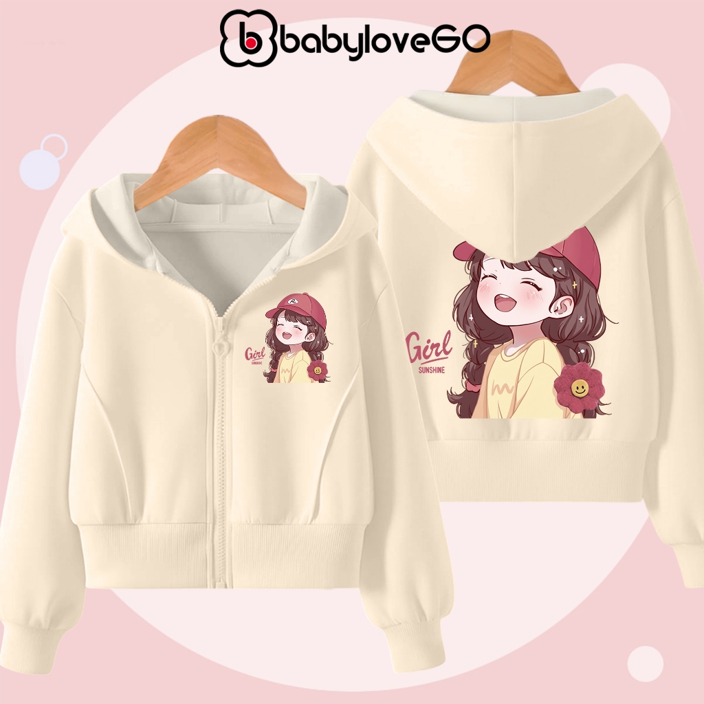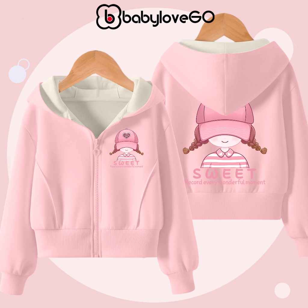 Áo khoác nỉ bé gái BabyloveGO áo nỉ có mũ và khóa kéo tiện lợi cho bé 1-10 tuổi