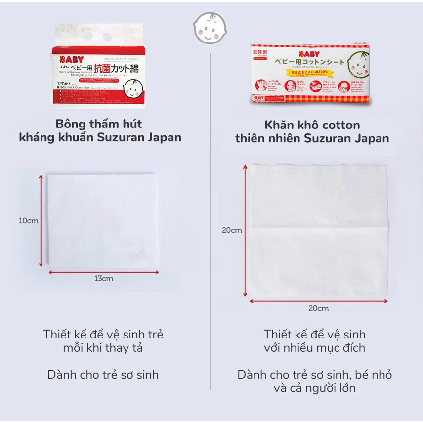 Khăn khô cotton thiên nhiên Suzuran Nhật Bản