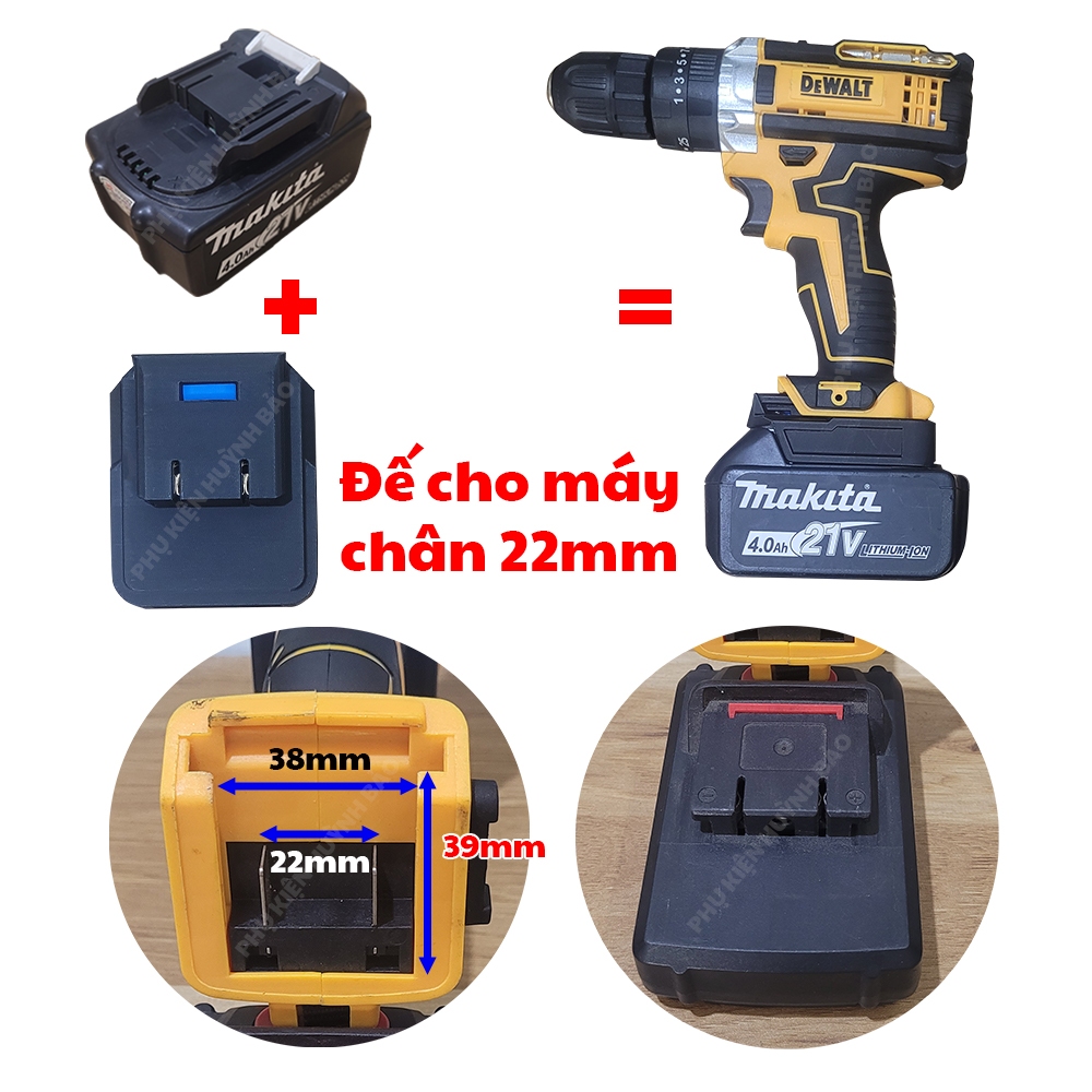 Đế Chuyển Pin Makita 18V Sang Máy Chân Pin 18/22/24mm (Ngàm trượt)